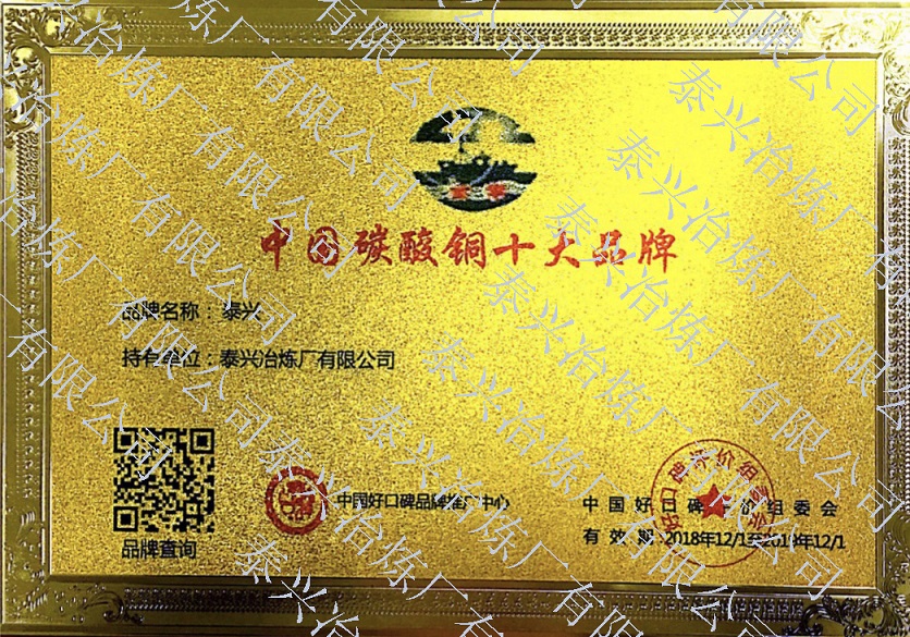 自主研發(fā)的空氣二次氣提生產(chǎn)高純堿式碳酸銅,填補國內(nèi)空白,獲得泰州市科技進步二等獎